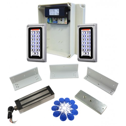 Completely weatherproof Access Control Gate kit with TWO Weatherproof Keypads, Weatherproof Power Supply, Weatherproof Maglock with mounting kit Ideal for mounting outside next to a gate that needs to be controlled.